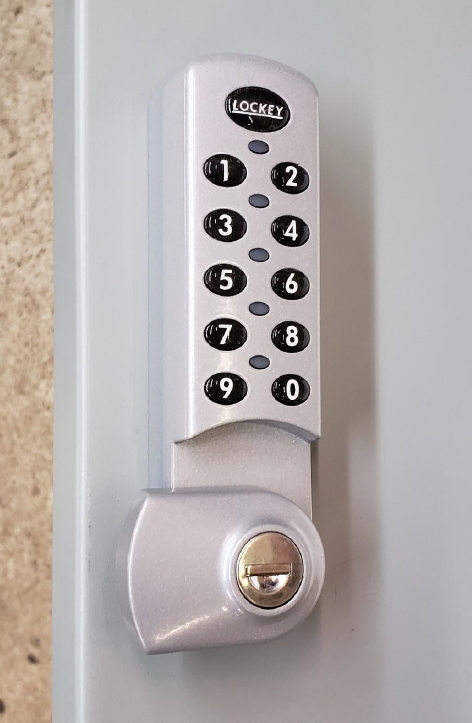 - Doors have plated cylinder locks and continuous piano-type hinges.